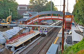 The challenge at the Allen Lane Train Station was to preserve the historical heritage while renovating the site. The other challenge was to do the iron work while SEPTA continued track operations. Entrances and exits were all made handicap accessible. The limited workspace around the train station and accessing the bridge spans over catenary electrical cables were executed by using high reach cranes.
