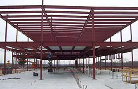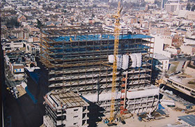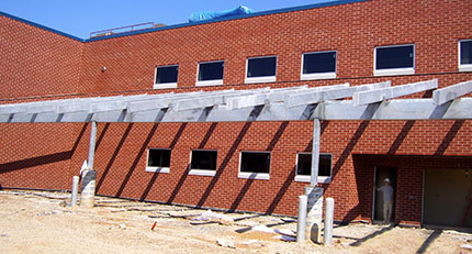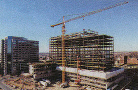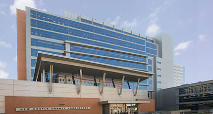 The courts and legal offices serving New Castle County, Delaware, are housed in this modern, security oriented ten story building. Erected on 5.3 acres in the center of the City of Wilmington, it also features a multi-story parking facility. The New Castle County Courthouse a T Shaped fourteen story tower with a four story wing. To maintain a seven month erection schedule RC Fabricators had to erect 120 tons of steel a week The project was manned with 3 foremen , two crane operators and a crew of 25 along with a 230 foot tower crane and a 75 ton mobile crane. Each floor was 16 feet tall which housed the new courtrooms and office space.