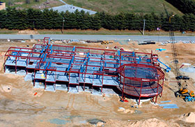 R.C. Fabricators contract included additions and alterations to the existing I-95, E-Z Pass Toll Plaza located on the I-95 corridor in Newark, Delaware. The highlight of this project consisted of fabrication and installation of a new 150’ clear span walkway over the north and south bound lanes of 95 along with addition of associated gantries and stair towers. The work also included modifications and additions to the main and satellite toll plazas.