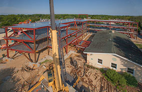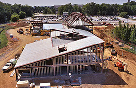 AstraZeneca Child Development Center is located on a corporate campus in Wilmington, Delaware. The challenge was to deliver and erect the structure during the company’s daily operations. The confined workspace presented challenges during construction. Navigating the large cranes and delivering over-sized loads of material was effectively executed with careful planning, a streamlined process and the dedication of many skilled workers.